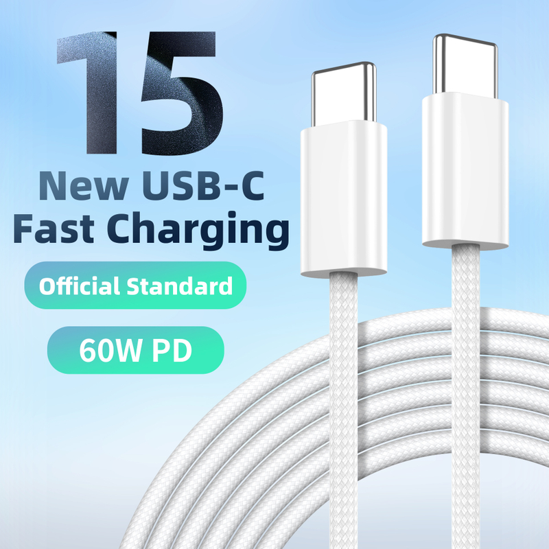 Latest 60W USB-C Charge Cable 1m for iPhone 15 PRO Max Nylon Braided Type C to Type C Cord iPhone15 Pd Charger Data Cable
